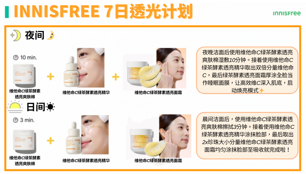INNISFREE 7日透光计划⏳——想要透亮美肌,正确使用超关键!💛