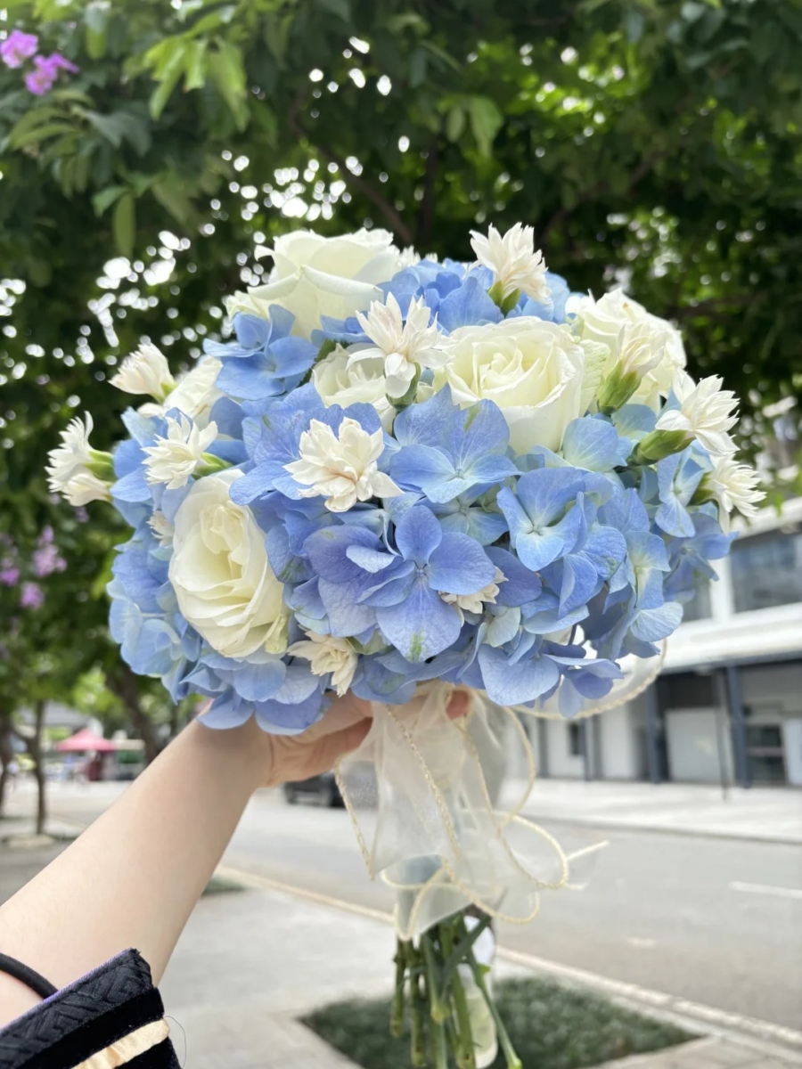 圆滚滚的绣球花由小花簇成,常见蓝紫或粉色系,气质宁静柔和。它的寓意是“感激”与“圆满”,特别适合送给家人、知己,或一段即将走向新阶段的关系。