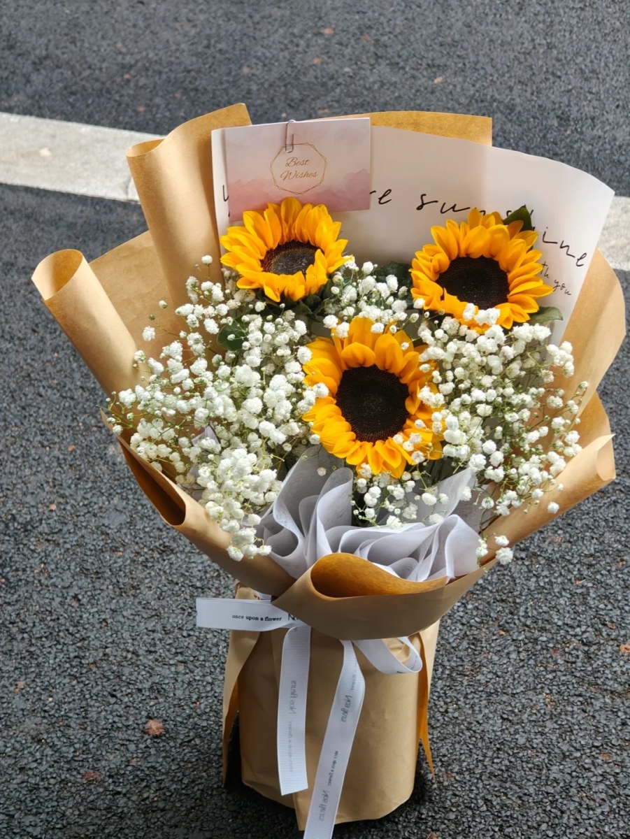 代表希望、朝气和勇敢,是毕业季的“定番”选择。不管是送同学、朋友,甚至送给自己,向日葵都是传递正能量的首选。大朵的金黄色花盘,本身就像一个笑脸,在毕业这个起点上,带来“未来可期”的祝福🌻