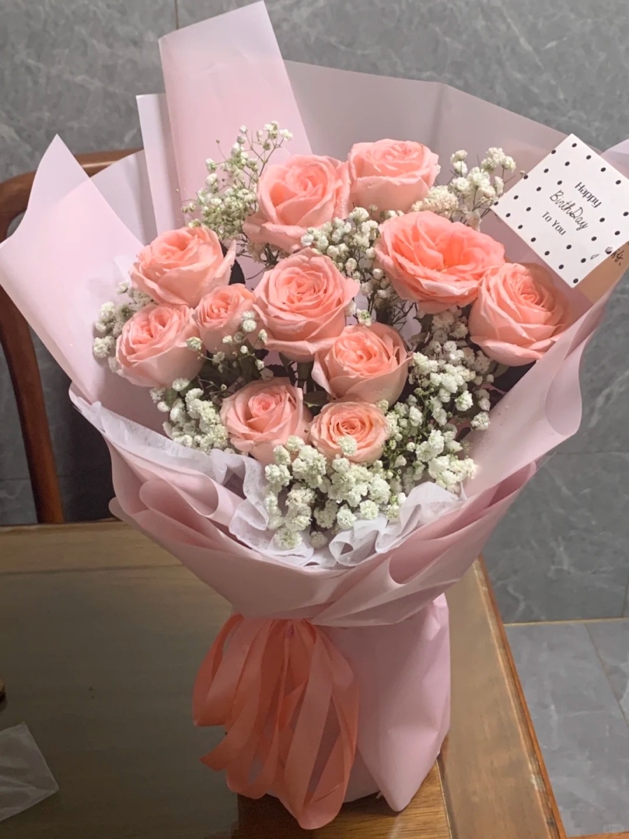 数量可选11朵或19朵,搭配小卡片和香槟色包装纸,既显诚意又不油腻。
