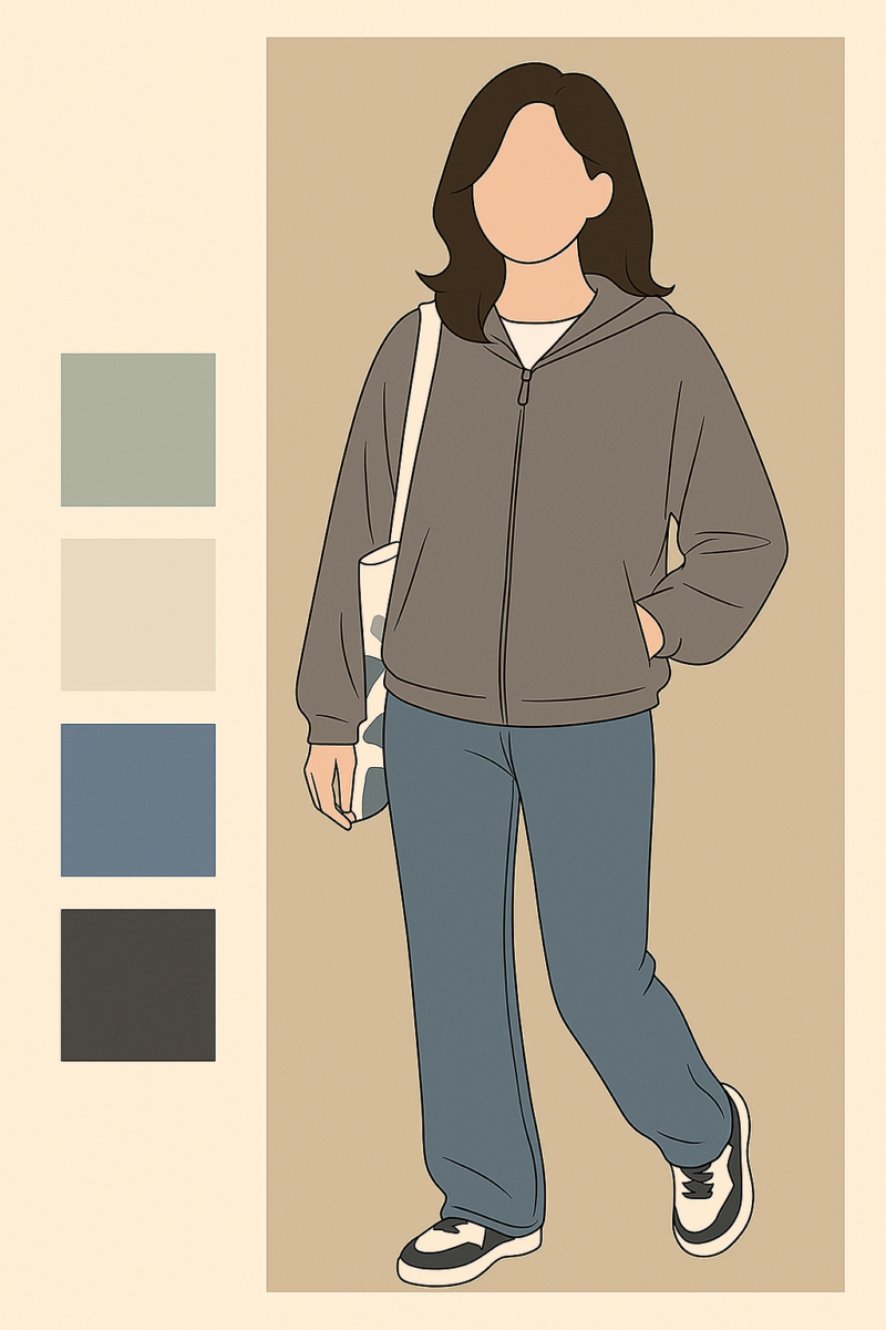 9. 灰色防晒衣 + 微喇牛仔裤 + 帆布包 + 板鞋