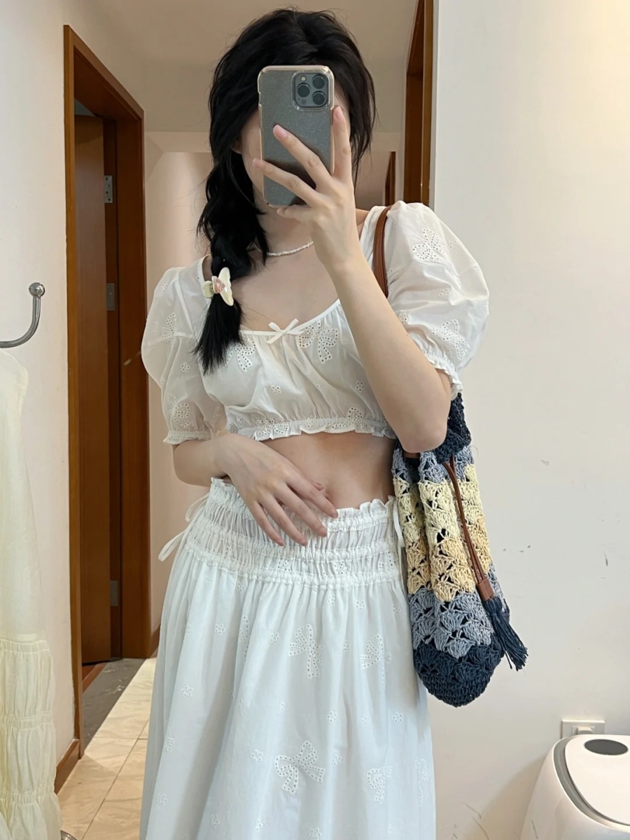 乳白色自带柔光效果,能中和黄黑皮肤色的暗沉,米白、乳白这类带点暖调的白色比冷白更柔和亲肤,适合大面积穿着,不易显脏。尤其适合用在连衣裙、衬衫等上装单品中,再搭配深色下装能拉出清晰层次,既显白又高级。
