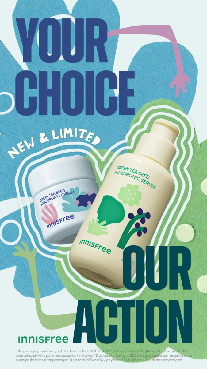 只有 INNISFREE 能超越 INNISFREE! 这次品牌将旗下No.1畅销的绿茶玻尿酸系列,以全新限量环保包装强势回归,以一句「Your Choice, Our Action. Every Bottle Counts」的品牌宣言,重新诠释经典与可持续并存的美学理念。