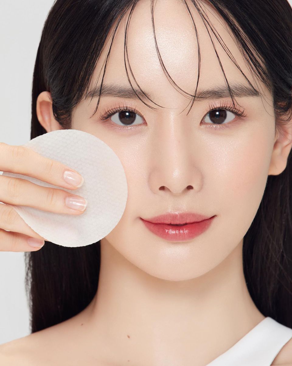 将卸妆水倒在化妆棉上,一定要让卸妆棉完全打湿。这样能减少摩擦,避免拉扯皮肤,也能提升清洁力。棉片太干容易造成敏感、泛红或小细纹,所以使用卸妆水时一定不能“吝啬”哦~