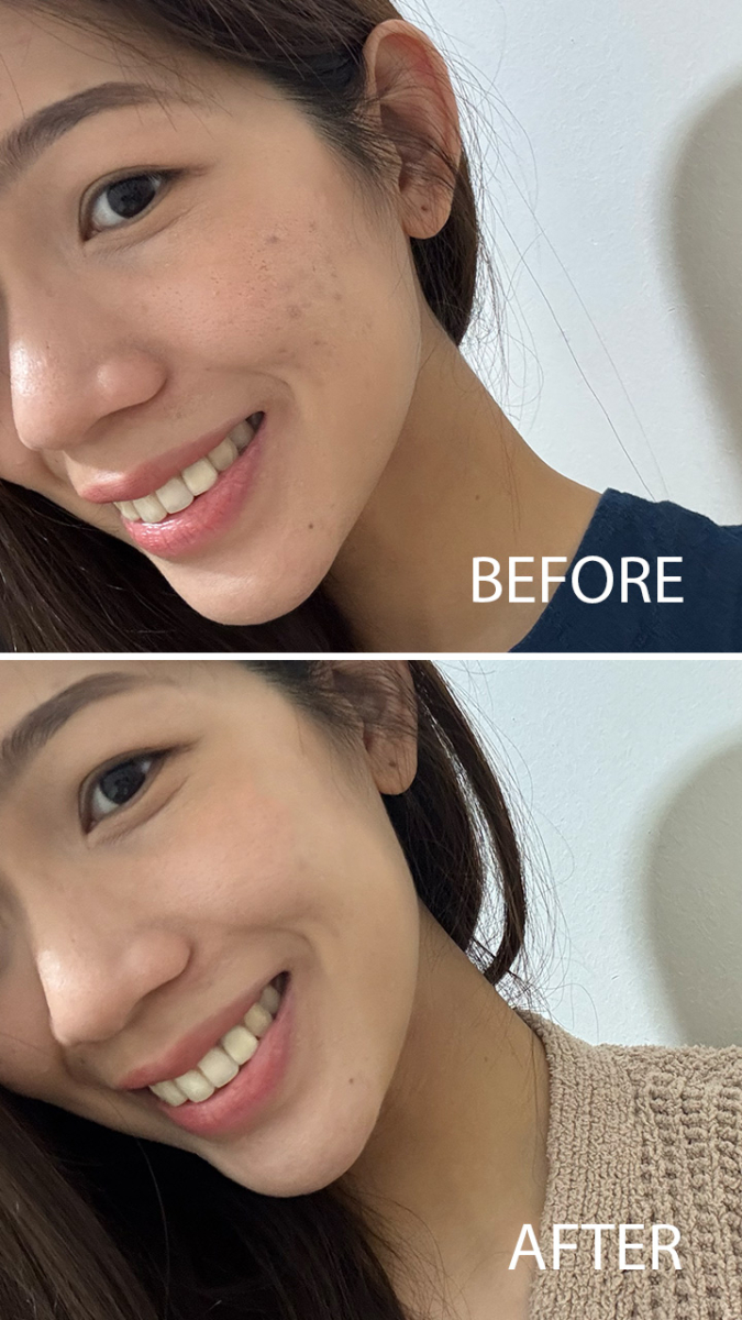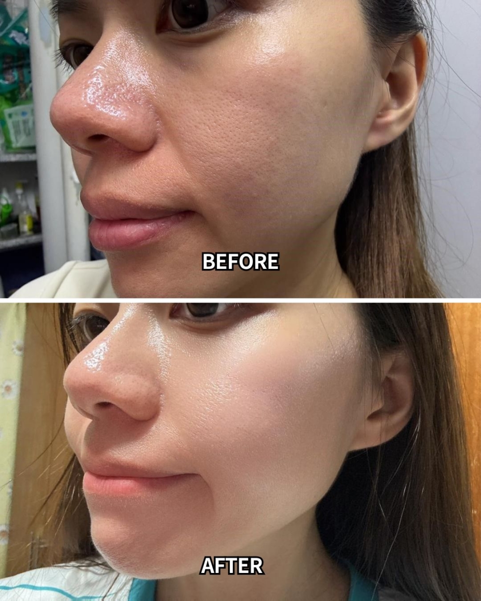 同为敏感肌的Tie Siew Li,使用几天后感觉自己的肤色提亮了不少,毛孔也是有非常非常轻微的,没那么明显了,皮肤也更水润,上妆有感觉更自然更服帖,而且不拔干!