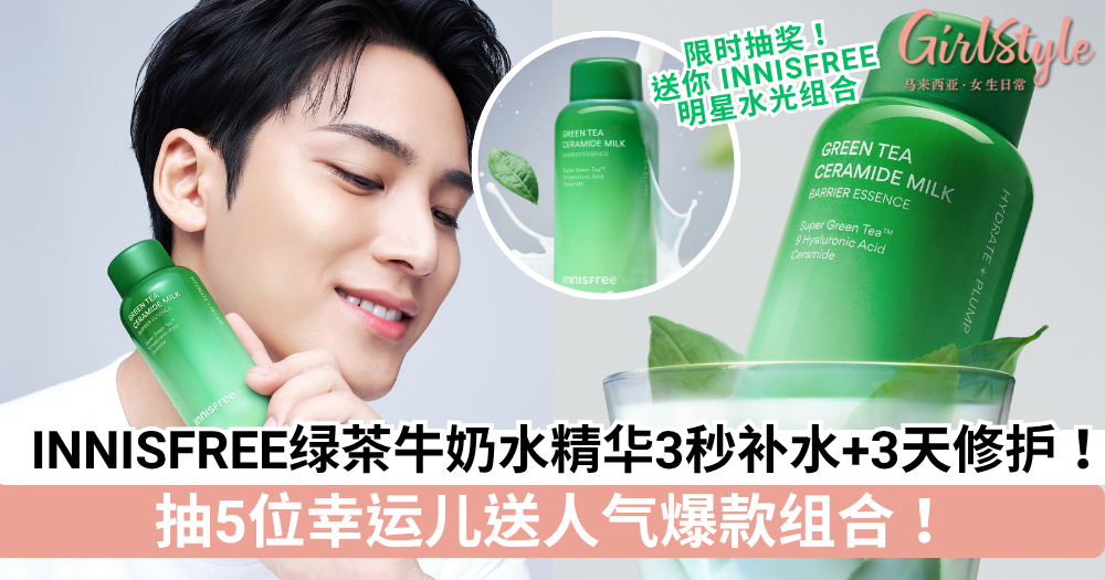 INNISFREE绿茶牛奶水精华3秒补水+3天修护!加码有奖活动🌟抽5位幸运儿送人气爆款组合!