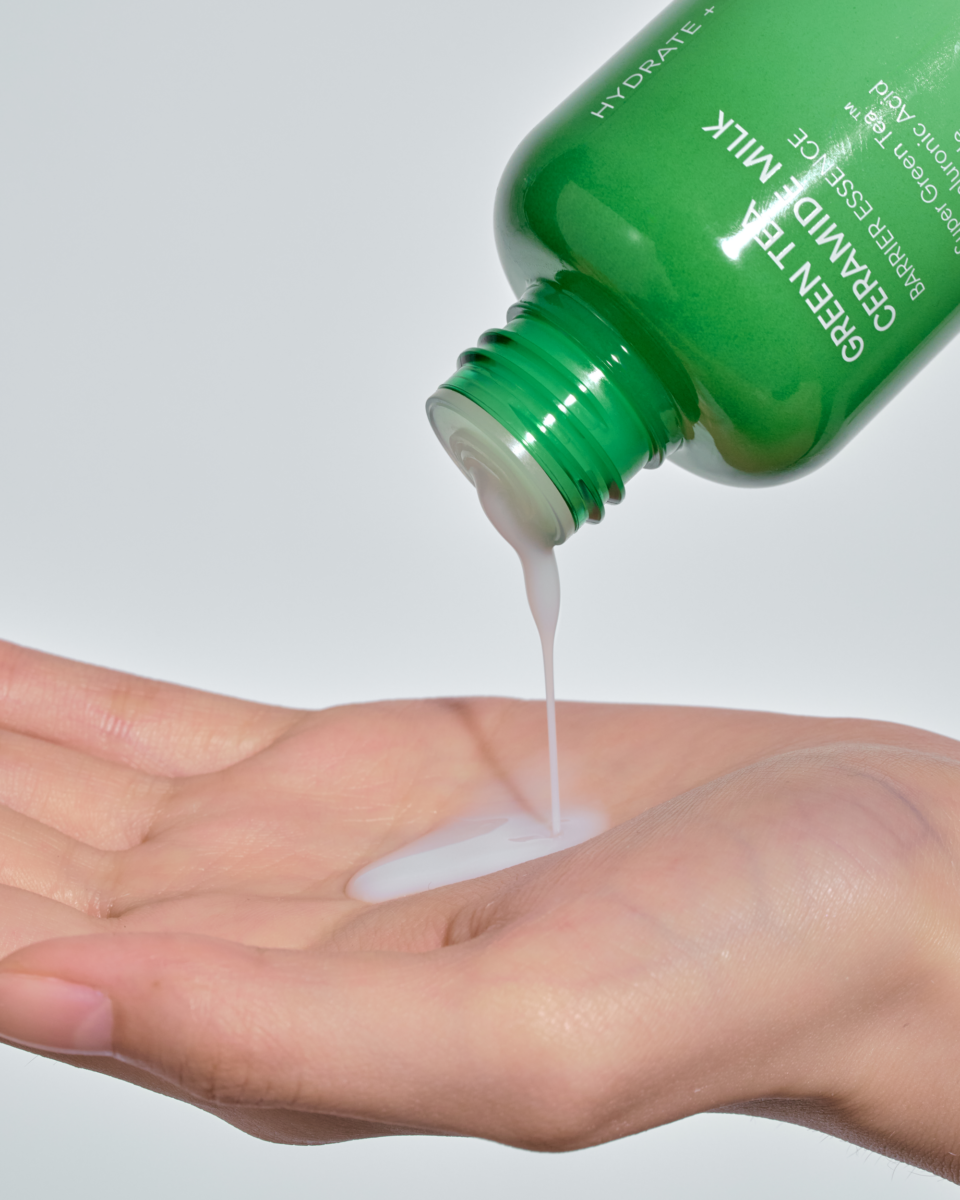 🌤 忙碌早晨护理:洁面 → 绿茶神经醯胺牛奶水精华