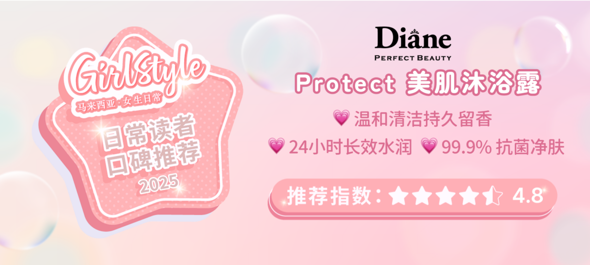 家人们~GirlStyle 联手 Diane Perfect Beauty Protect Body Wash 美肌沐浴乳 试用活动圆满收官啦!🎉 这段时间我们收到的正面反馈简直要溢出屏幕,大家对 Diane 的“表白”真的暖到心坎里!🥹💗而更让我们尖叫的是——报名瞬间爆满,大家对Diane Perfect Beauty Protect 美肌沐浴乳的“期待值”简直冲破天花板🥰✨
