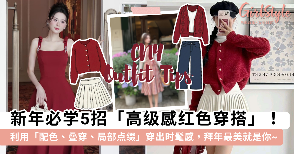 新年必学5招「高级感红色穿搭」!利用「配色、叠穿、局部点缀」穿出时髦感,拜年最美就是你~