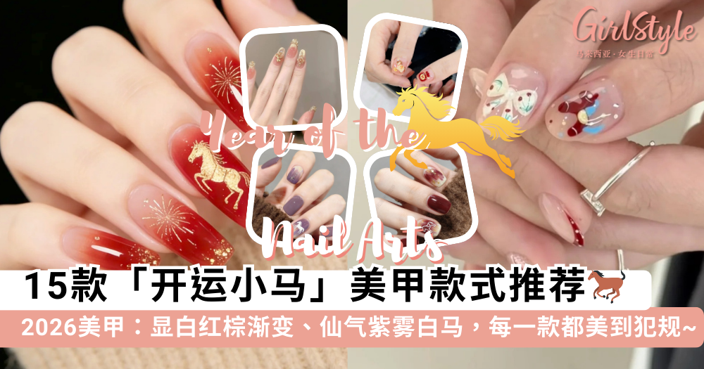 2026马年美甲图鉴!16款「开运小马」款式推荐:显白红棕渐变、仙气紫雾白马,每一款都美到犯规~