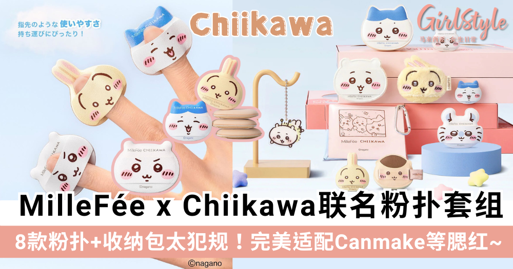 MilleFée x Chiikawa 粉扑套组超可爱:8款粉扑+收纳包太犯规!完美适配Canmake腮红!