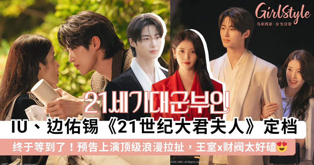 大家快尖叫吧!国民天后 IU(李知恩)与「初恋男神」边佑锡终于要合体啦!两人继《月之恋人—步步惊心:丽》后时隔 9 年再度结缘,主演的全新力作《21 世纪大君夫人》正式定档于 4 月 10 日上线。这部剧不仅集结了颜值天花板的神仙组合,更将背景设定在虚构的现代君主立宪制韩国,讲述一段财阀千金与落魄王子的「契约婚姻」故事,预告片一出便瞬间引爆话题,绝对是 2026 上半年最受瞩目的梦幻之作呀!✨