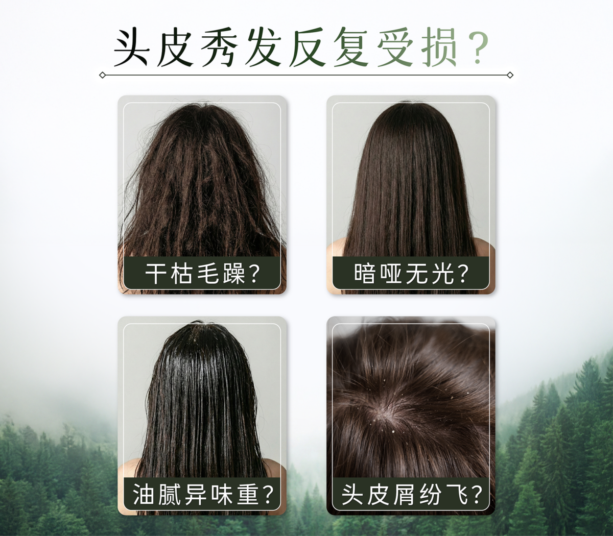它的味道比较特别,不是那种烂大街的甜腻香,而是草药的味道,很森林系的感觉,闻起来特别治愈放松。真的很满意整体效果,会再持续使用,希望可以看到发质明显改善。