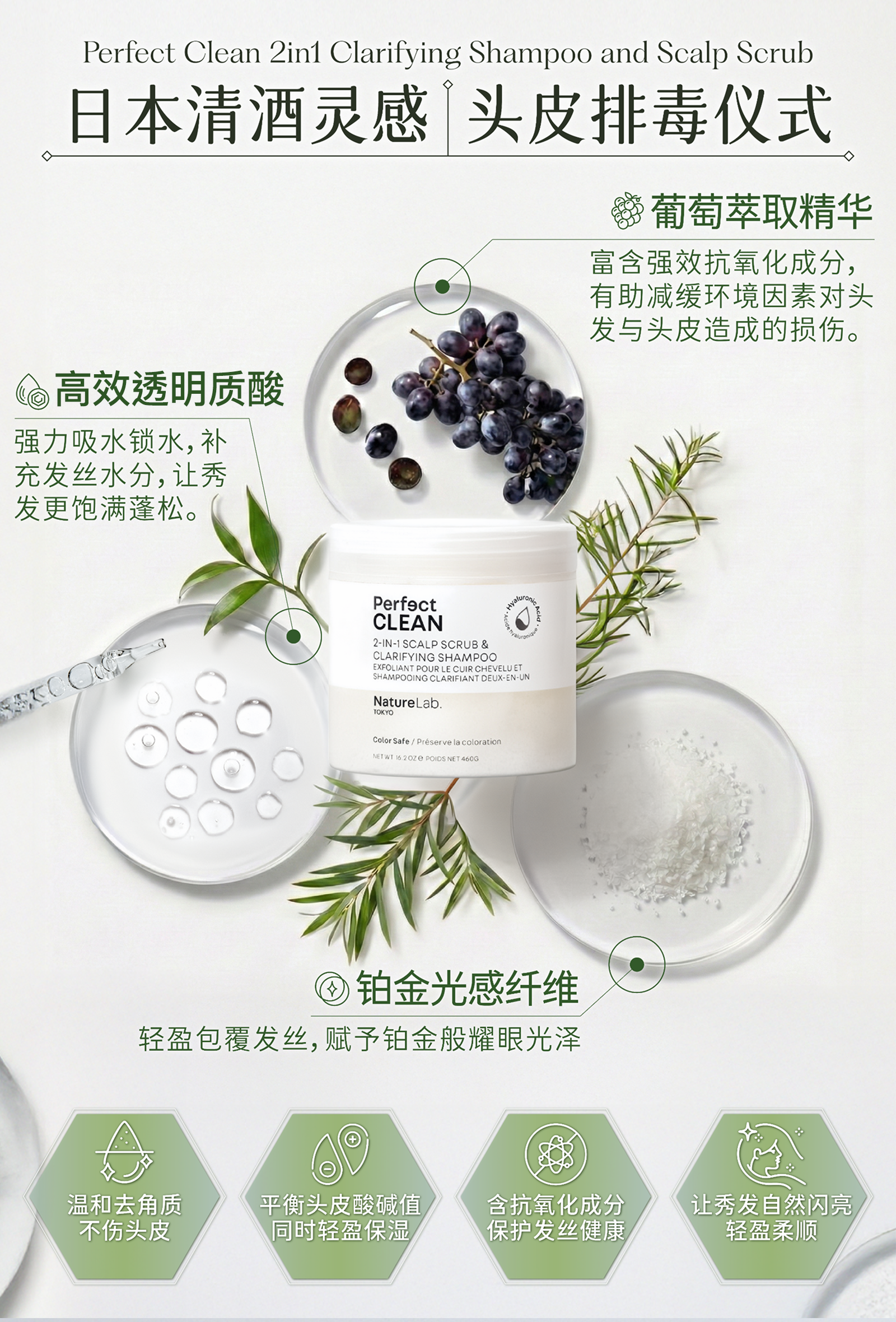 🌟 头皮健康+深层清洁:PERFECT Clean Clarifying Scalp Scrub 二合一头皮净澈磨砂膏