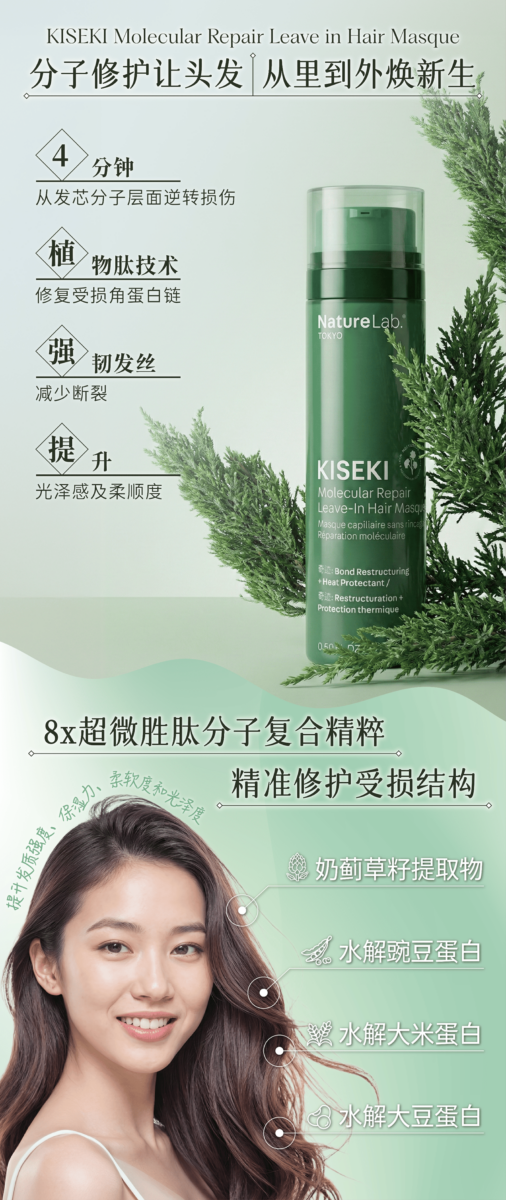🌟高温+染烫后受损发救星:KISEKI Molecular Repair Leave-in Hair Masque分子修复免洗发膜