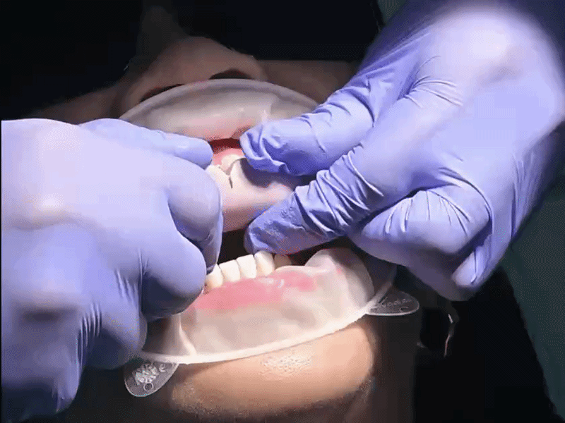 接下来就是重头戏了!医生将一种临时凝胶材质放入牙模中,再套在牙齿上。短短几分钟内,这层凝胶就会凝固,变成类似牙釉质般光滑的质感。当牙模被轻轻取下的那一刻,我的牙齿上已经悄悄套上了一整排试戴贴面!