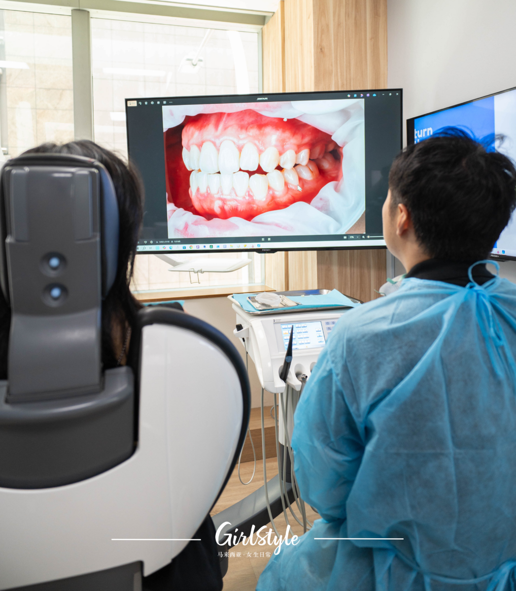 接下来就是由 Dr Justin 帮我做 3D 口腔扫描,还有高解析度的牙齿和牙龈拍摄。所有画面都会直接显示在屏幕上,他一边帮我讲解,一边一起看、一起分析我牙齿的状况,其实还蛮有参与感的。