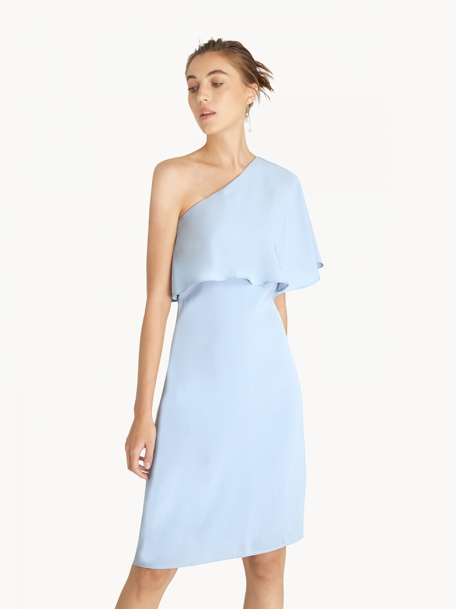 With its soft pastel blue hue, this off-shoulder dress is perfect for daytime gatherings where family will be present. Perhaps a wedding party, or even Chinese New Year?