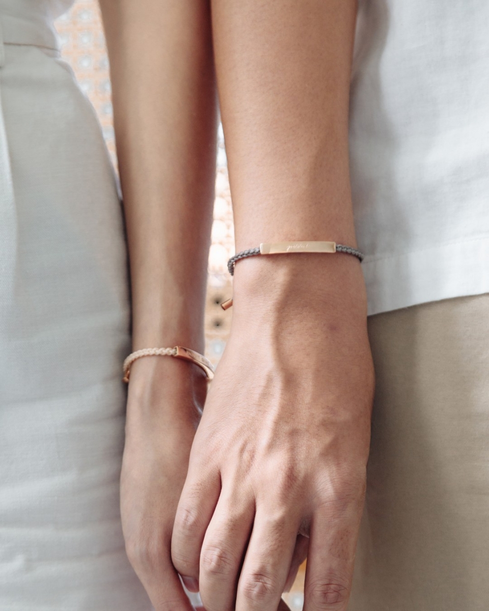 If there’s a word or a phrase that holds a special significance for both of you, why not have it engraved on matching bracelets? Over at The Mindful Company, there’s a small range of bracelets (braids, gemstones and cords) starting from $58 that comes with free engraving - just choose a font, let them know what you’d like to inscribe and they’ll take care of the rest!