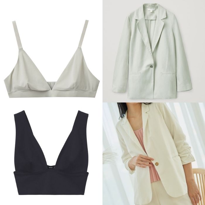 Wear nothing but a bralette underneath a blazer—bold, and perfect for Singapore’s weather too. For a more put-together look, make sure to match the colours and materials.