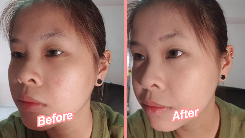 “The foundation was really easy to build up, and it doesn’t cake. While my acne bumps can still be seen, they’re not as obvious as the product really helped with blurring the texture on my face. It helped to cover up some redness and pigmentation too. The foundation did shift a little after a whole day with a mask on, but overall it performed well in a humid environment and didn’t cause clogged pores for my acne-prone skin.”