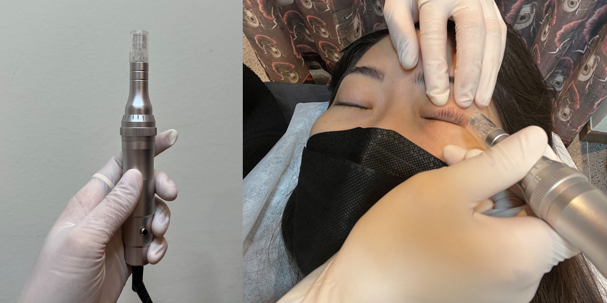 Next is the key part of the treatment. A device that uses high-frequency vibrations to exfoliate will be used on your lash line. This helps to slough off any dead skin cells so the regrowth serum can be better absorbed, and unclogs hair follicles for better growth.