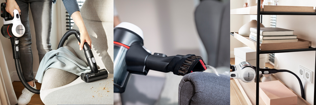 While we love our furry pals, they have a penchant for getting fur everywhere. Luckily, the Unlimited 7 cordless vacuum cleaners come with three different attachments to keep your house spick and span. There’s an upholstery nozzle for your sofa and other soft furnishings, a 2-in-1 furniture brush for delicate surfaces and small upholstered furniture, as well as a long and flexible crevice nozzle for tight spaces. The ProAnimal model also comes with a flexible extension hose, which makes cleaning up so much more ergonomic. Just FYI, this flexible hose isn’t included with the other Unlimited 7 models but can be purchased from BOSCH’s Customer Service Centre separately.