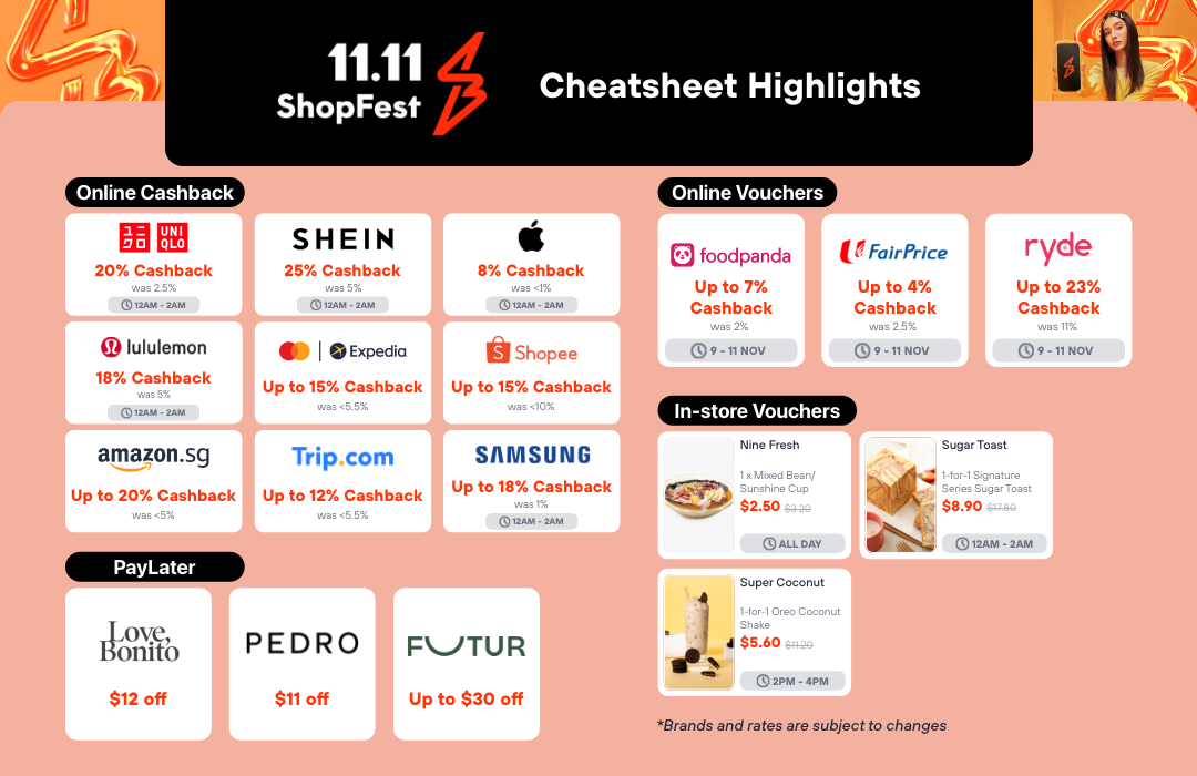 And here’s another pro tip: shop this coming 11.11 sale with ShopBack to earn more cashback and savings! Besides that, you can also look forward to the following deals and rewards: