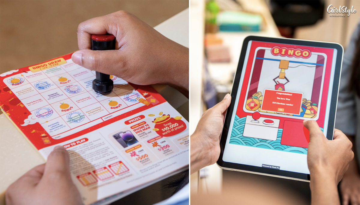 Earn a stamp on your bingo card when you hit the minimum spend for each category – be it $50 for food & beverage or $100 for electronics and telecommunications (shoppers must spend a minimum of $20 in a single receipt; up to a maximum of 2 same-day receipts). Once you’ve completed 5 boxes in a row, you earn 1 chance at the Claw Machine and 1 chance at the lucky draw.