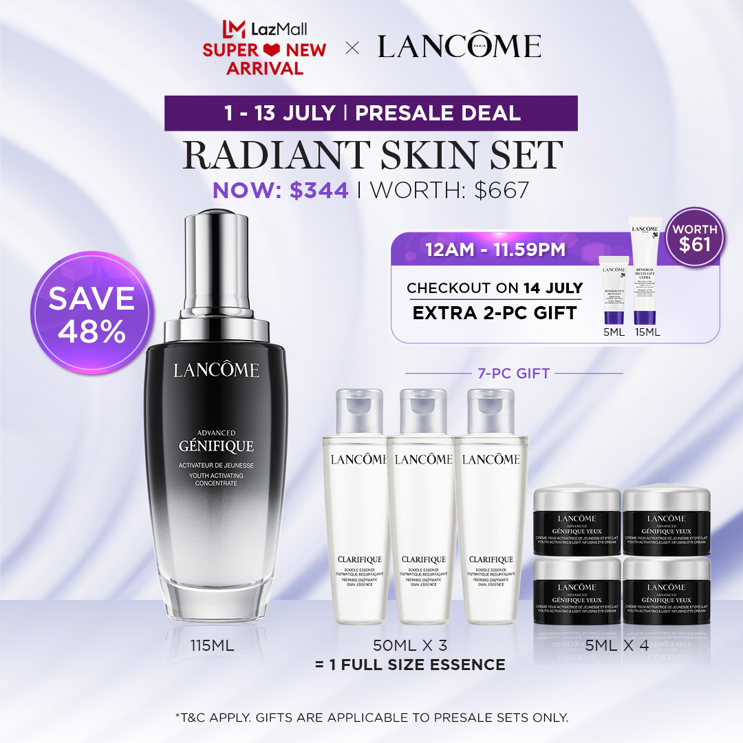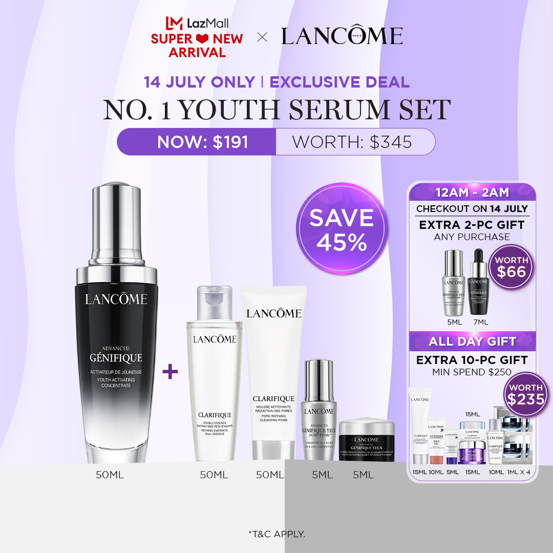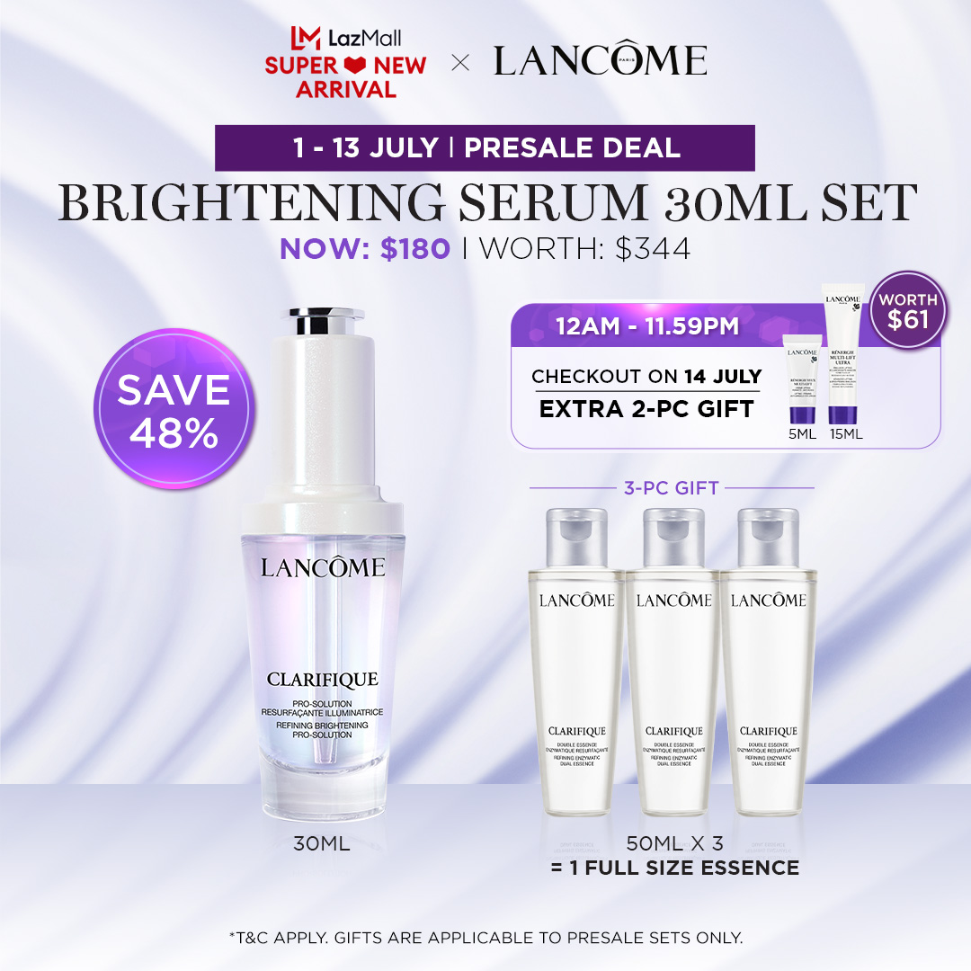If hyperpigmentation is a concern that you would like to address, this set is your ideal pick because it features Lancôme’s Clarifique Clarifying Pro-Solution Serum. Containing a potent yet mild peeling ingredient named PHA, it was designed to minimise the appearance of dark spots. Be assured that the formula is gentle and suitable for all skin types, including sensitive and acne-prone skin.