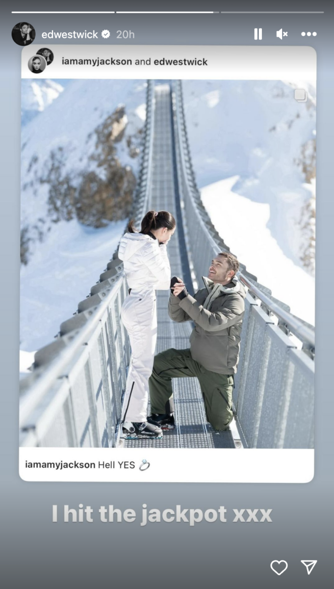 In her caption, Jackson confirmed the winter engagement with a spirited "Hell YES" and a ring emoji. On his Instagram Story, Westwick celebrated the engagement, sharing the post and exclaiming, "I hit the jackpot xxx."