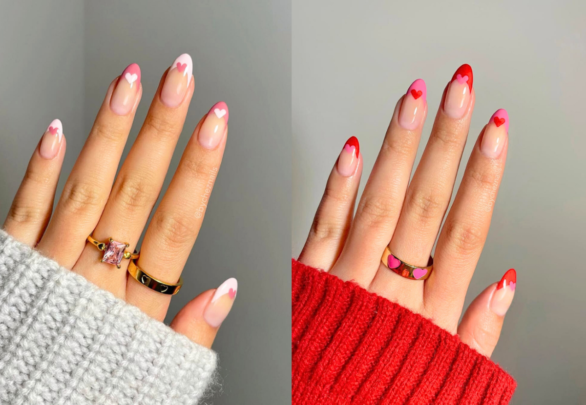 Photo from @bycheznails via IGKeep it simple and cute with pink-on-pink French tips! The mix of medium and light pink shades adds dimension, while tiny matching hearts on the tips make the design extra sweet. You can also opt for a twist of red!