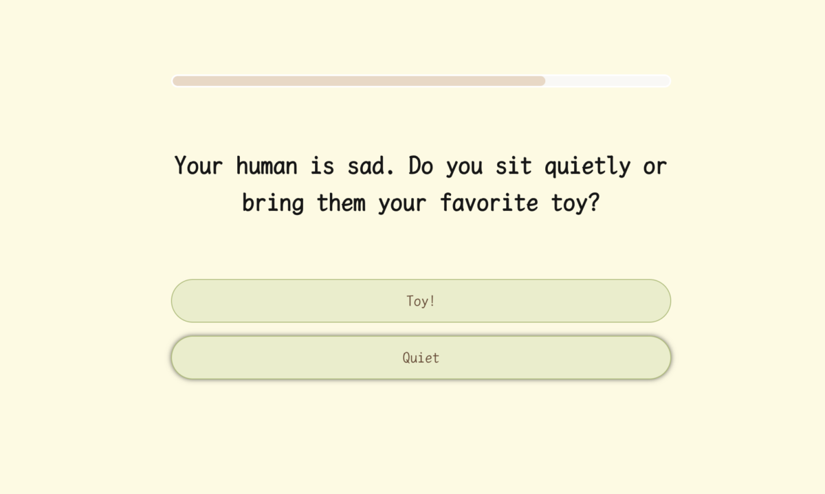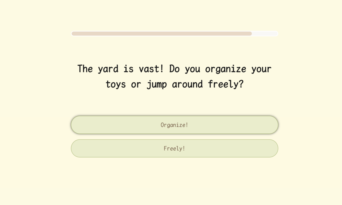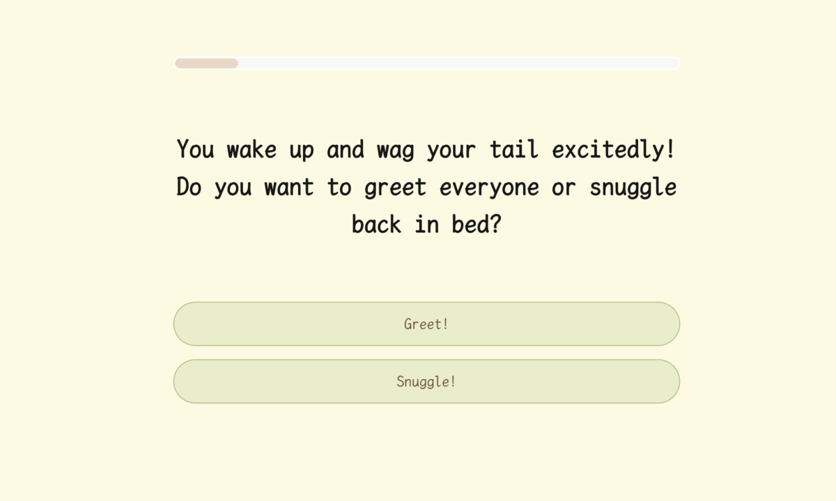 The quiz starts off with a mood check. When you wake up, do you want to jump around and greet everyone or stay in bed and wag your tail quietly?