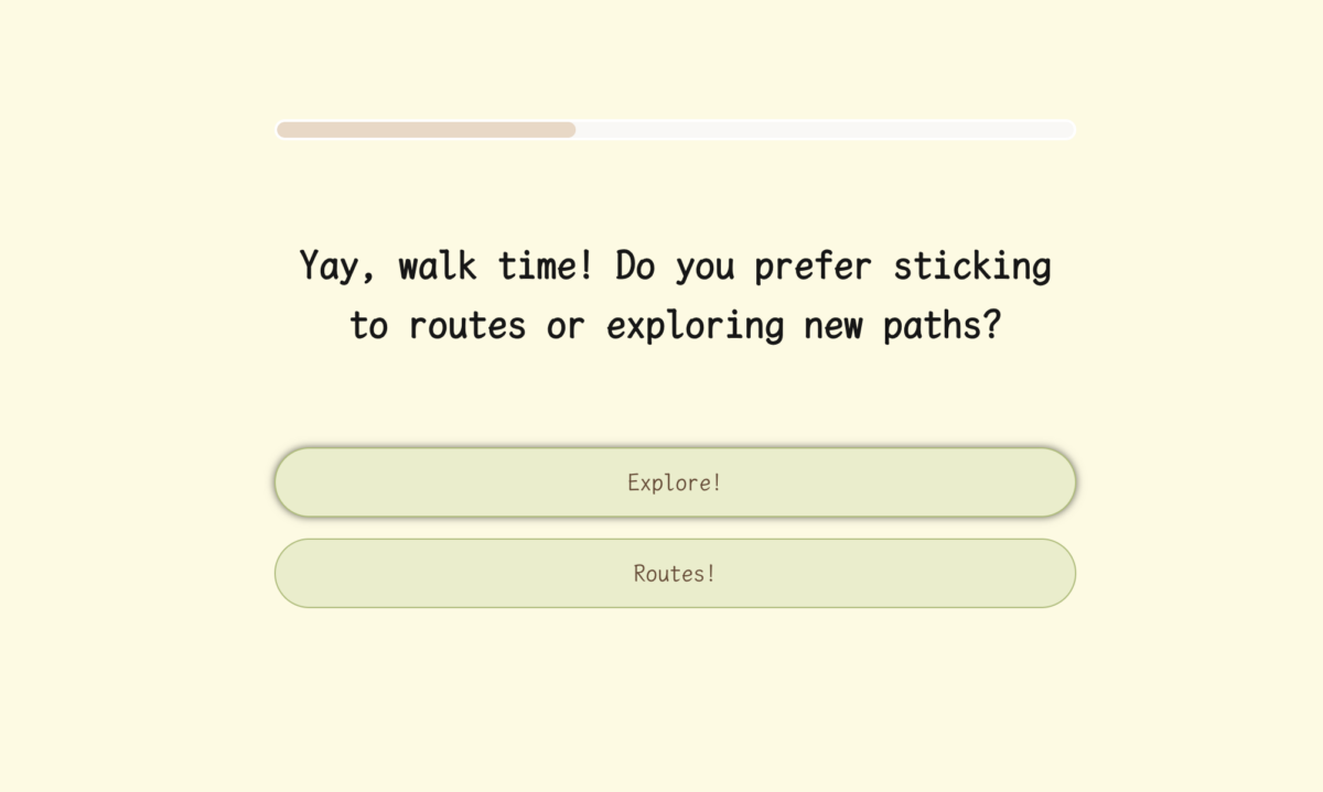 Then one question asks how you feel about walks. Do you like sticking to the usual route or get excited to try something new?