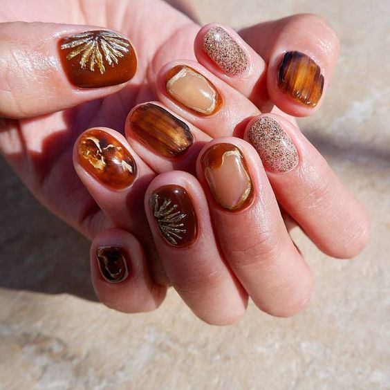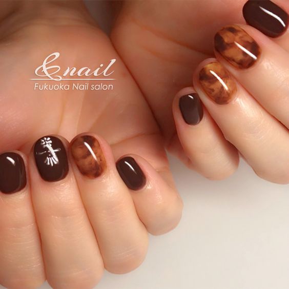 琥珀指彩因為帶有著濃濃的「大人味」,許多人不太敢嘗試,擔心一畫上去就會「顯老」。不過真的完全不用擔心,無論是加點深色調的「重咖琥珀」,或是帶些黃色系的「楓葉琥珀」做起來一點也不超齡,反而因為流光暈染的豐富性,讓指甲充滿高級感。