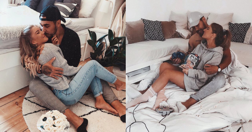 別以為一定要出門才能拍!兩人在家親密依偎也是很強的姿勢啊~男生可以依靠在沙發上,而女生當然就是依靠在男朋友的身上囉~兩個人可以對看也可以互相摸摸小臉,拍攝的角度只要平行就好,是不是超簡單!