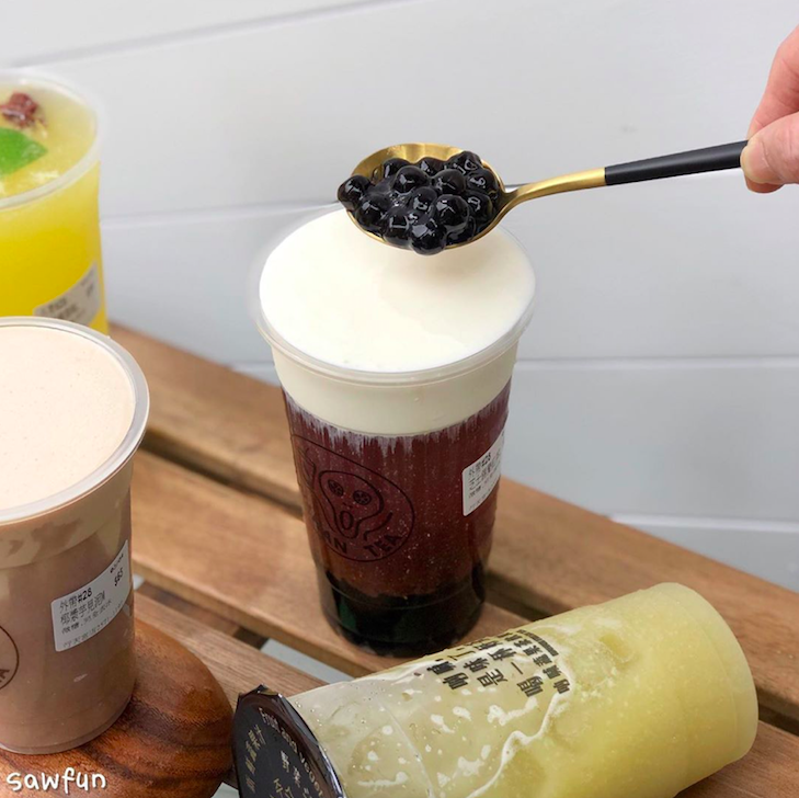 品牌Logo插畫人物是亮點,帶點厭世眼神的表情複印到杯身上,放在辦公桌上看著也是超療癒的!來這裡一定要喝最有特色的法芝奶蓋茶系列,抿茶的奶蓋可是砸重本,使用法國芝士搭配韓國鮮奶油,是不加一滴水的濃郁奶蓋~完全成為這店家的靈魂主角!