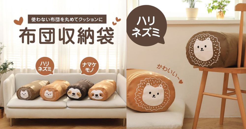 表情呆萌的樹懶和刺蝟竟然是用來收棉被的收納袋!這兩款超可愛的動物造型收納套堪稱換季必備的好物之一,相信大家都有厚厚的毛毯或是冬季棉被要收起來,但很可能一時也翻不到大型塑膠袋,此時就可以用上它了!官方表示內部空間可以完整放入一條棉被,塞進去之後還能化身抱枕或是靠墊,完全不會佔據空間喔~這款只要300日圓就可以入手,下次有機會看到請速速結帳!