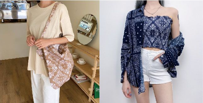 民俗圖樣也是韓國今年春夏很夯的元素之一,但是在台灣還比較少看到有人穿,這種圖樣不同於碎花、格紋等,因為它具有重複排列組合的美感,但每一件的圖案又不完全一樣,具有非常強烈的記憶點,通常這種圖樣的材質偏輕透,也很適合要出遊度假的女孩們入手這種圖樣的單品,營造出滿滿的休閒度假Look!