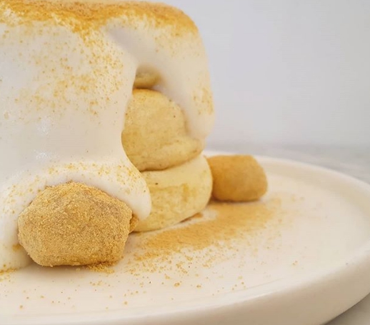 最後則是韓國的國民甜點:黃豆粉蕨餅口味!相信有去過韓國的朋友一定對黃豆粉不陌生!軟Q的蕨餅再搭配鮮奶油吃,光看照片浮誇的奶油就好想飛去韓國吃呀!