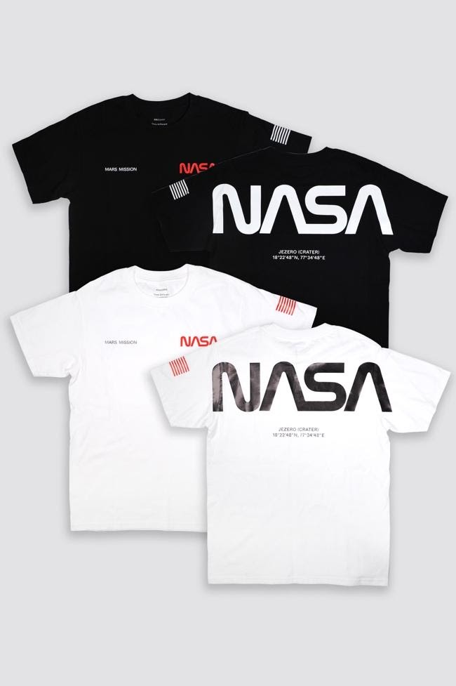 限定推出的聯名圓領重磅T-Shirt 以黑白紅色調搭配特大 NASA 標誌及毅力號預計抵達的火星區域資訊,簡約中不失細節,材質採用 100% 美國 6oz 優質純棉,無論在地球或在火星都讓你穿的舒服透氣!