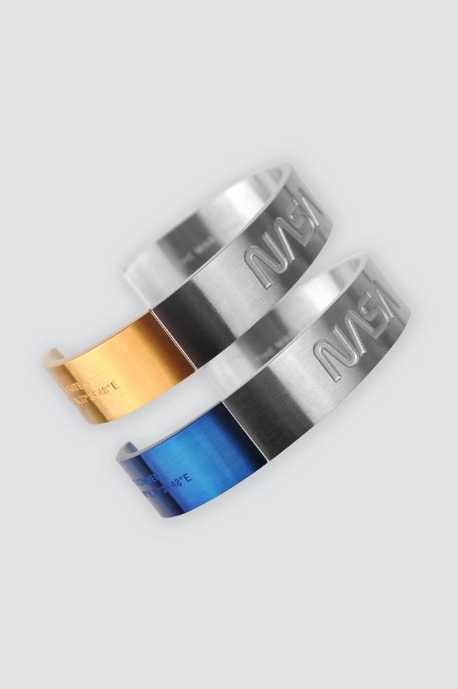 線條優雅又充滿未來感的時尚手鐲「The Mars Cuff」刻有 NASA 標誌與火星 Jezero Crater 的座標,不只霧面的金屬色適合各種穿搭,跳tone的金、藍兩色也能讓整體造型看起來更吸睛!