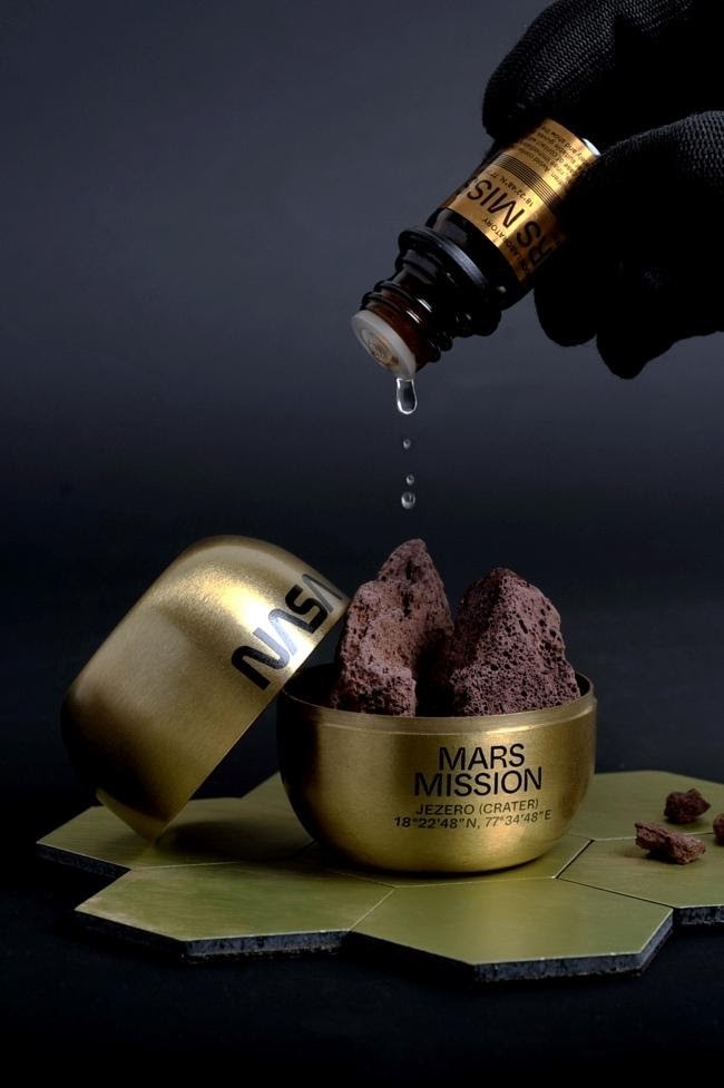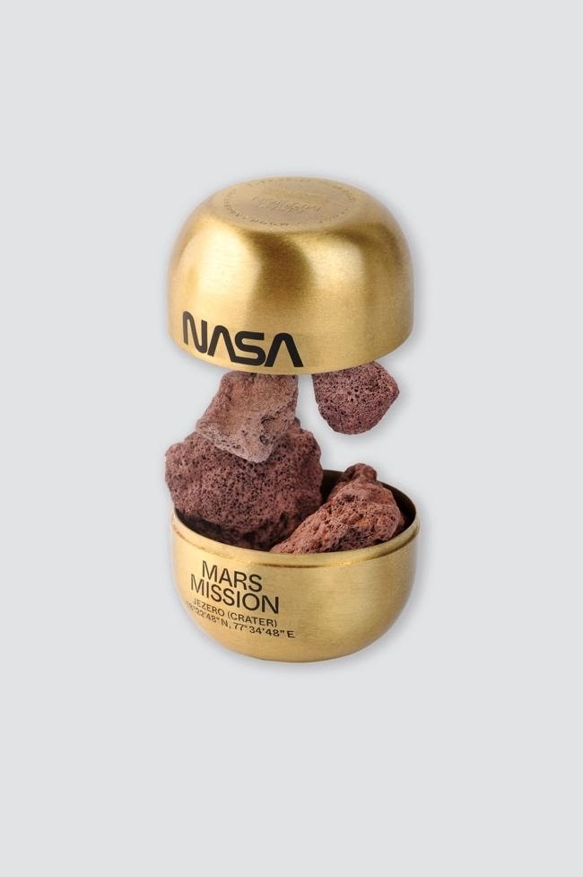 為了帶給大家全方面的感官體驗,超狂的「MARS MISSION」聯名系列甚至推出「The Mars Scent」香薰,外包裝非常講究的使用金色金屬盒,香薰石以火星的赤土與地形為模型,結合科學與想像力模擬火星的氣味,滿足你對紅色星球的想像!