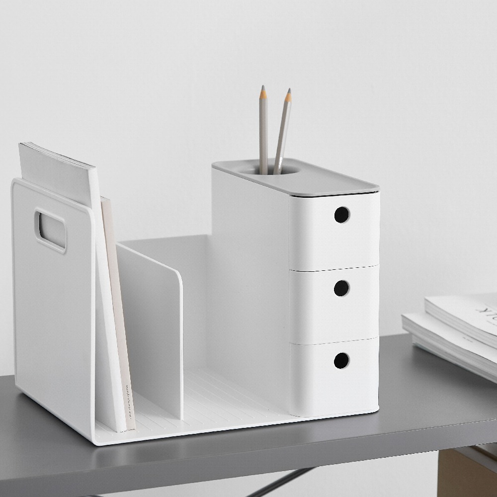 可擦拭的原子筆或許已經不稀奇,但外觀就先贏一半的 100percent 六角黃銅可擦筆絕對值得有品味的你擁有!極簡風的筆身採噴砂加工,或以黑色/白色塗料呈現霧面質感,筆芯刻意做得像一般鉛筆給人一種懷舊感,手拿超有設計感的可擦筆,保證讓同事們都對你肅然起敬!另外Litem & Sysmax 二段多功能抽屜式組合書架也是看似簡單但充滿巧思的辦公良品,三層抽屜收納盒結合書架的設計,不只還你整齊桌面,潔白配色及簡約線條,讓你在視覺和心靈上也能感到療癒~