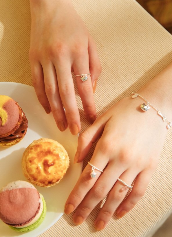BONNY & READ x HELLO KITTY 午茶派對聯名系列不只耳環,從項鍊、手鍊和戒指都能一次買齊,「甜蜜午茶項鍊組」和「甜蜜午茶手鍊」,以單色金屬圖案點綴粉嫩系裝飾,讓你的鎖骨、手腕看起來更加柔美,精緻的設計展現出輕熟女的少女心~ 有別於以往,這次聯名系列特別推出「甜蜜午茶戒指組」,一組有三只,上面分別垂掛著KITTY、草莓蛋糕和粉鑽,戴在手上保證讓你心情跟著甜蜜起來~ 如果你跟小編一樣有選擇障礙的話,就把整個系列通通包回家吧!