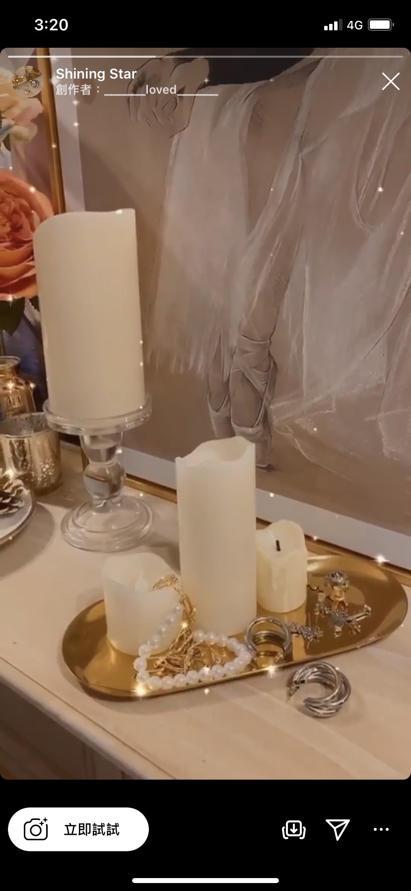現代人崇尚質感美學生活,房間都會有許多裝飾、提升儀式感的小物,如香氛蠟燭、飾品盤等,而這款濾鏡帶有亮珠光的閃亮特效,就好像歐洲中古世紀公主出場時自帶的特效一樣,特別適合拿來拍攝開箱、全身鏡穿搭照!