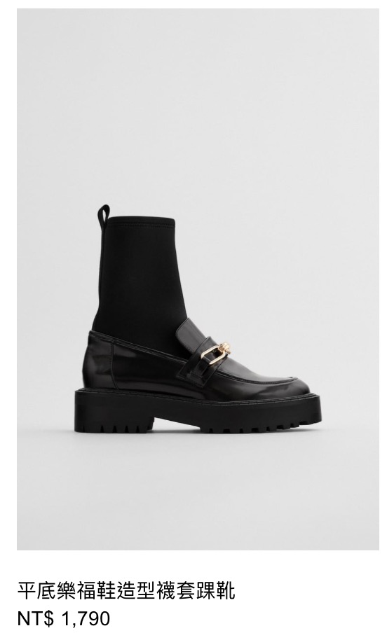 想跟別人來點不一樣的感覺,也可以選擇襪套款~尤其ZARA這款平底樂福鞋造型十分可愛,除了彈性襪套加上復古樂福鞋設計,鞋面上還有金屬鏈飾,加上增高厚底,整雙鞋太有層次了,而且一看就知道超保暖呀!