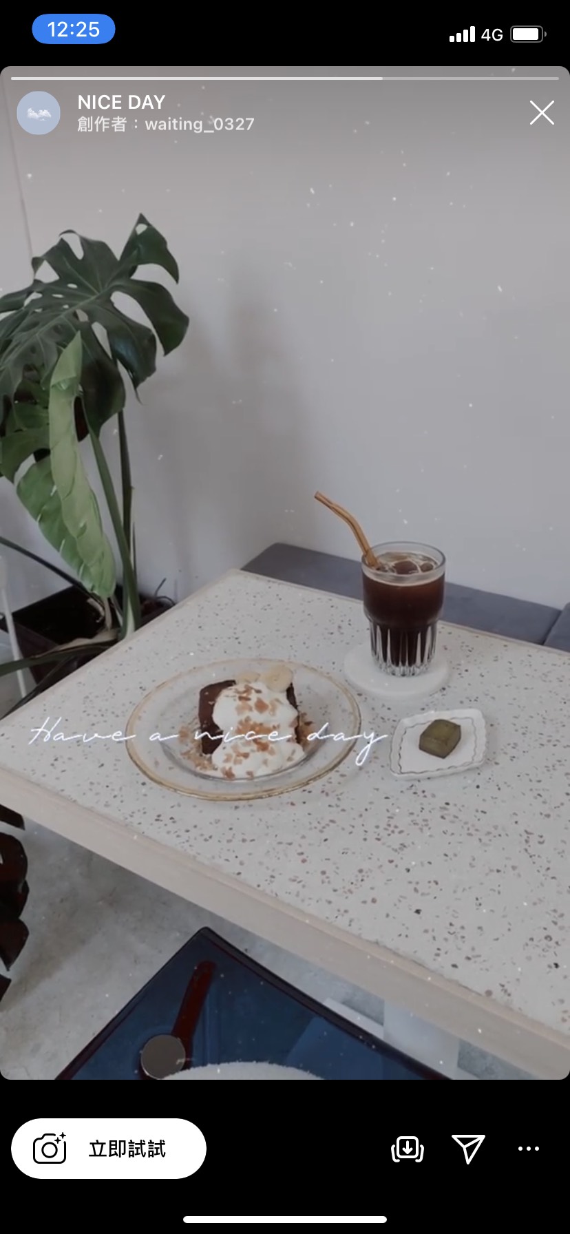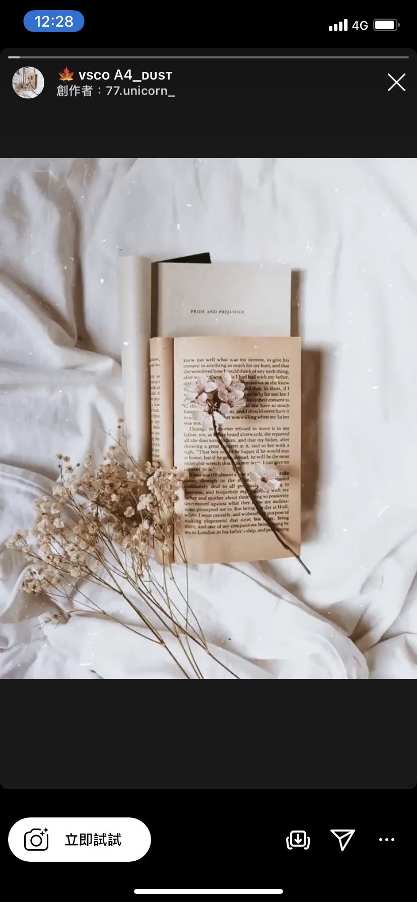 這款作者取名為與「金香濾鏡」的限動濾鏡,是帶有點溫暖黃色調的拿鐵色,可以使用在有乾燥花擺設的咖啡廳會非常溫柔好看,也可以用在花店、飾品店等,拍出來的限時動態馬上質感加分喔!