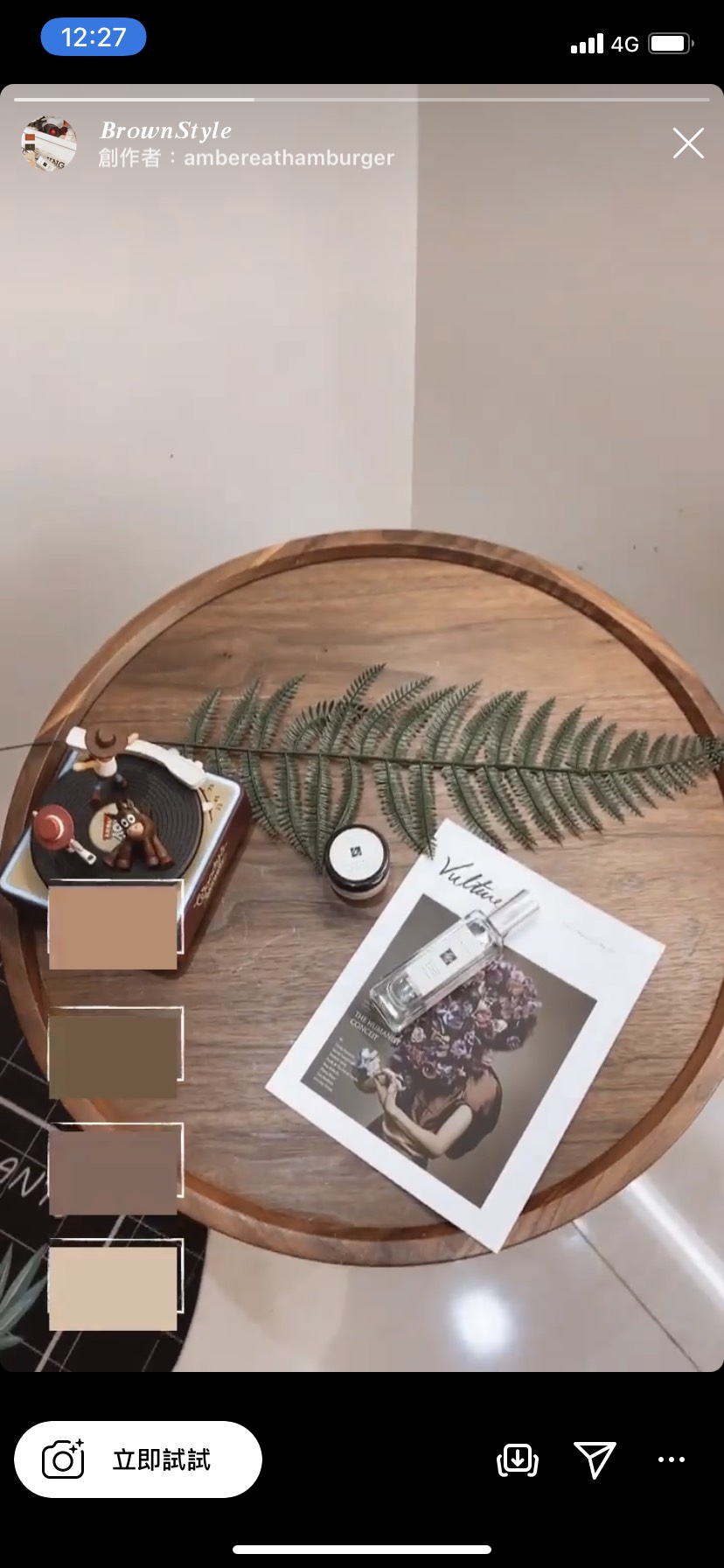 這款棕色調的濾鏡可以感應到畫面裡的顏色,而在左下角以不同色塊的模式呈現,拍出來的每篇限時動態都會不一樣,推薦給喜歡文青復古風的大家~