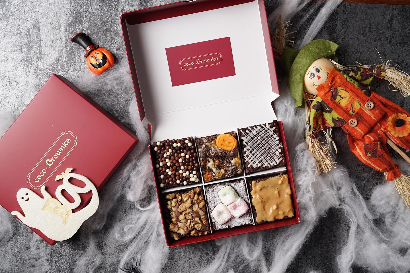 巧克力控最愛的布朗尼竟然變得超搞怪!為了讓大家一起感受萬聖節氛圍,超人氣的「cocoBrownies」也推出萬聖節限定布朗尼禮盒,一盒總共有6種口味的布朗尼可以自由搭配,擺上南瓜造型裝飾跟棉花糖之後,布朗尼真的瞬間可愛10倍~完全會捨不得吃啊!